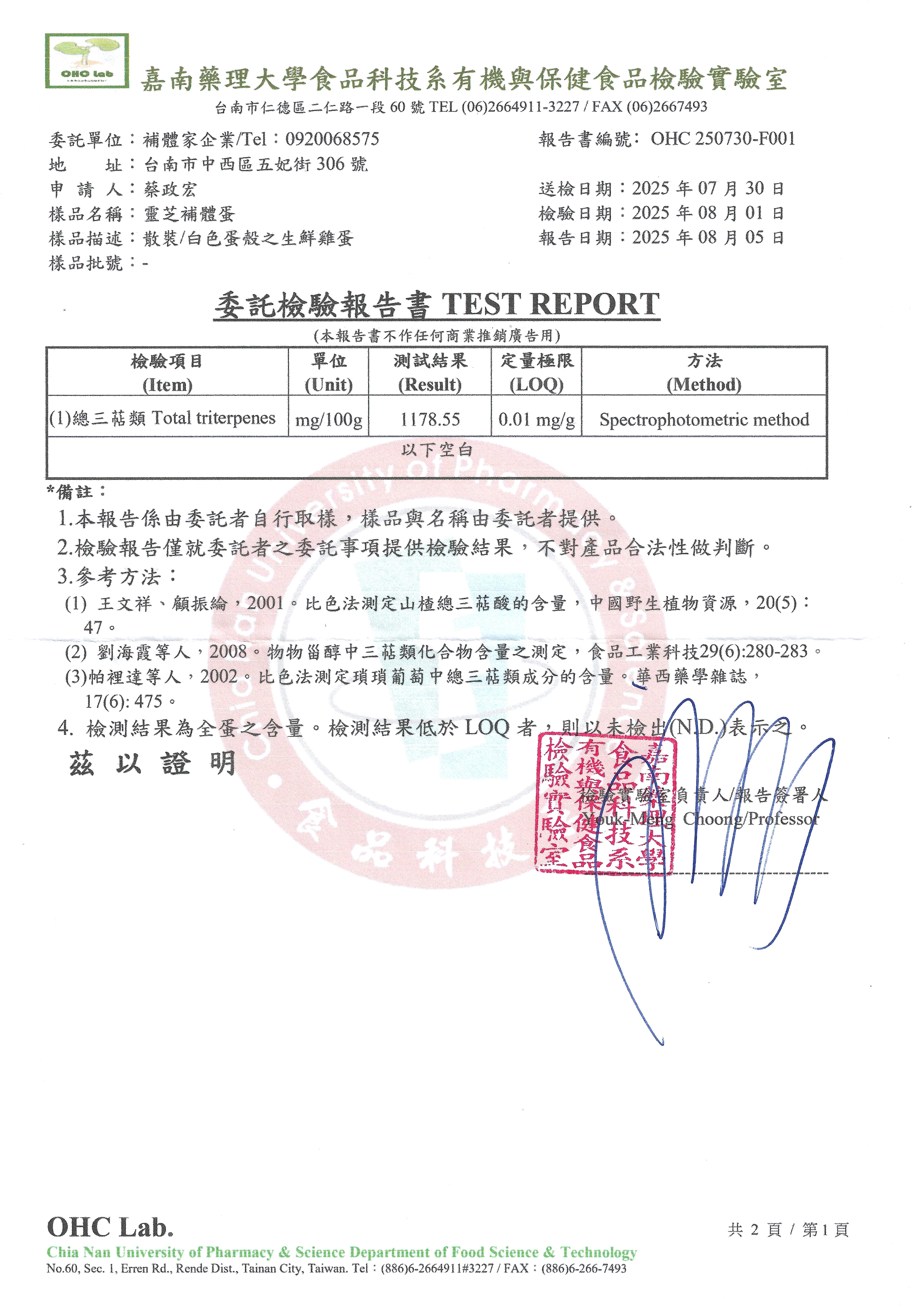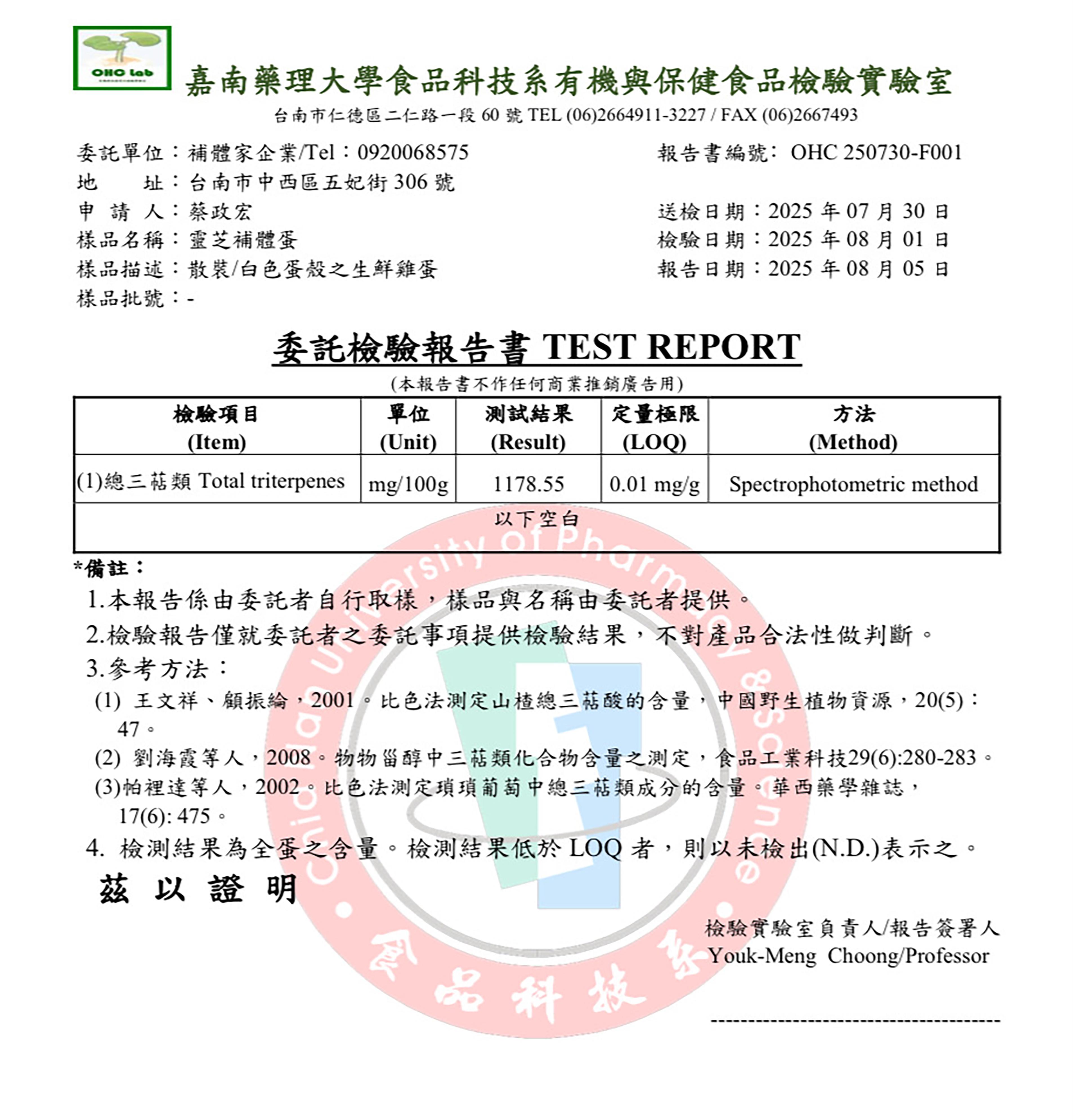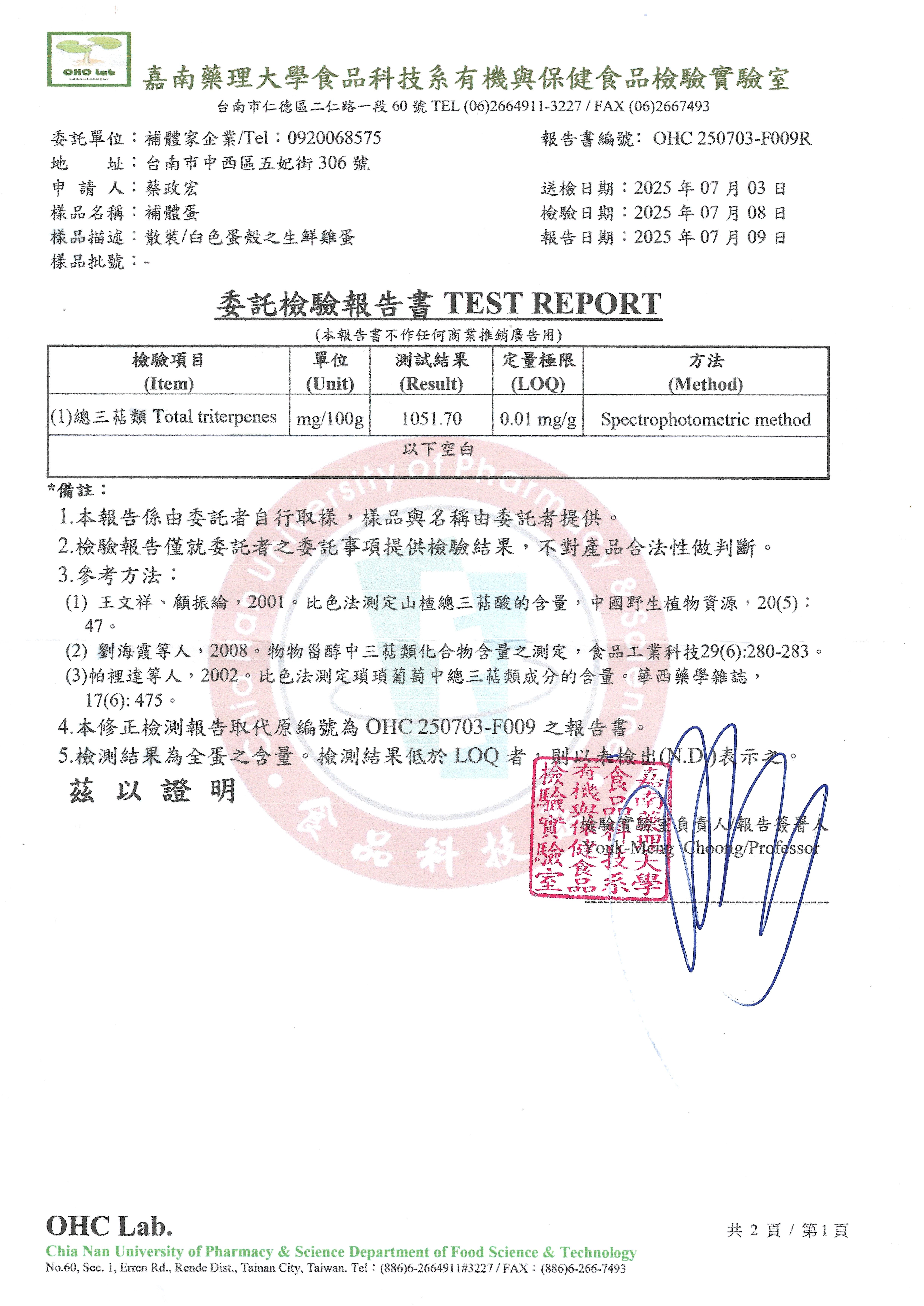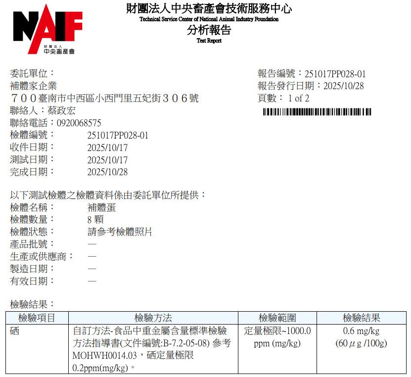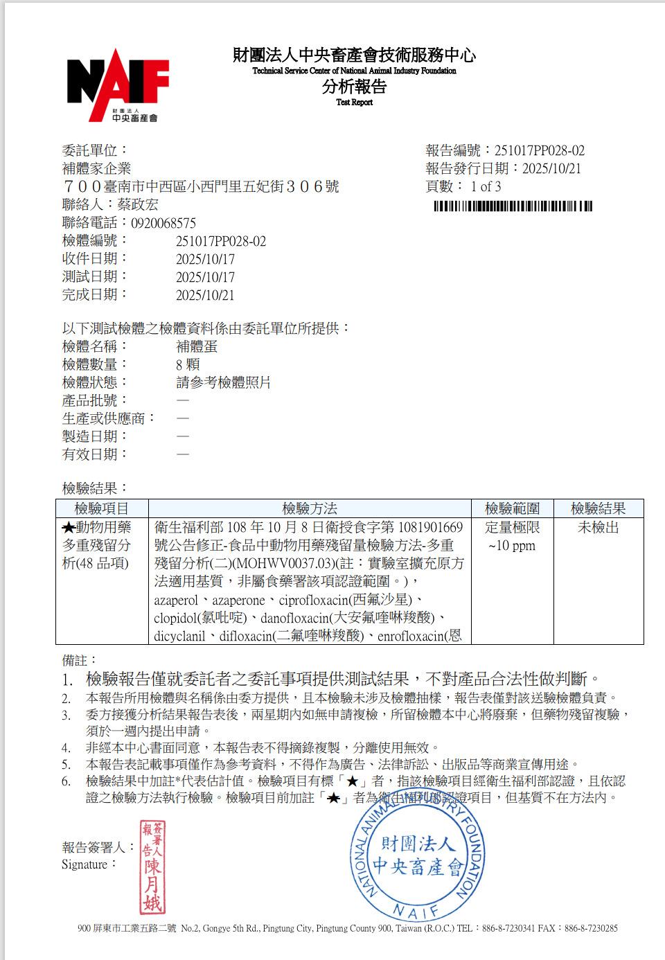 歡迎查閱補體蛋的檢驗報告及相關驗證資料